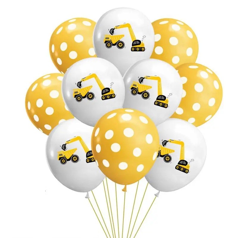 10 pcs Ballons en latex Motif de construction Pelle à points Décoration pour fête d'anniversaire d'enfants Décoration de fête à thème de construction
