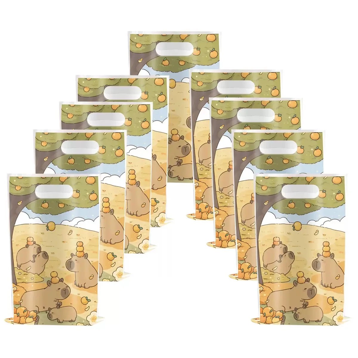 10 pcs Sacs cadeaux en plastique Kapybara Party sacs avec motif de capybaras Sacs cadeaux pour bonbons et petits cadeaux pour fête d'anniversaire d'enfants