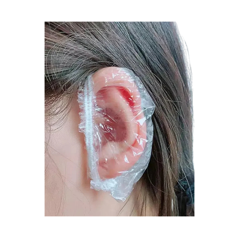 100 pcs protège-oreilles jetables étanches pour teinture des cheveux Couvercles d'oreilles en plastique élastique transparent Housses de protection contre l'eau et la couleur