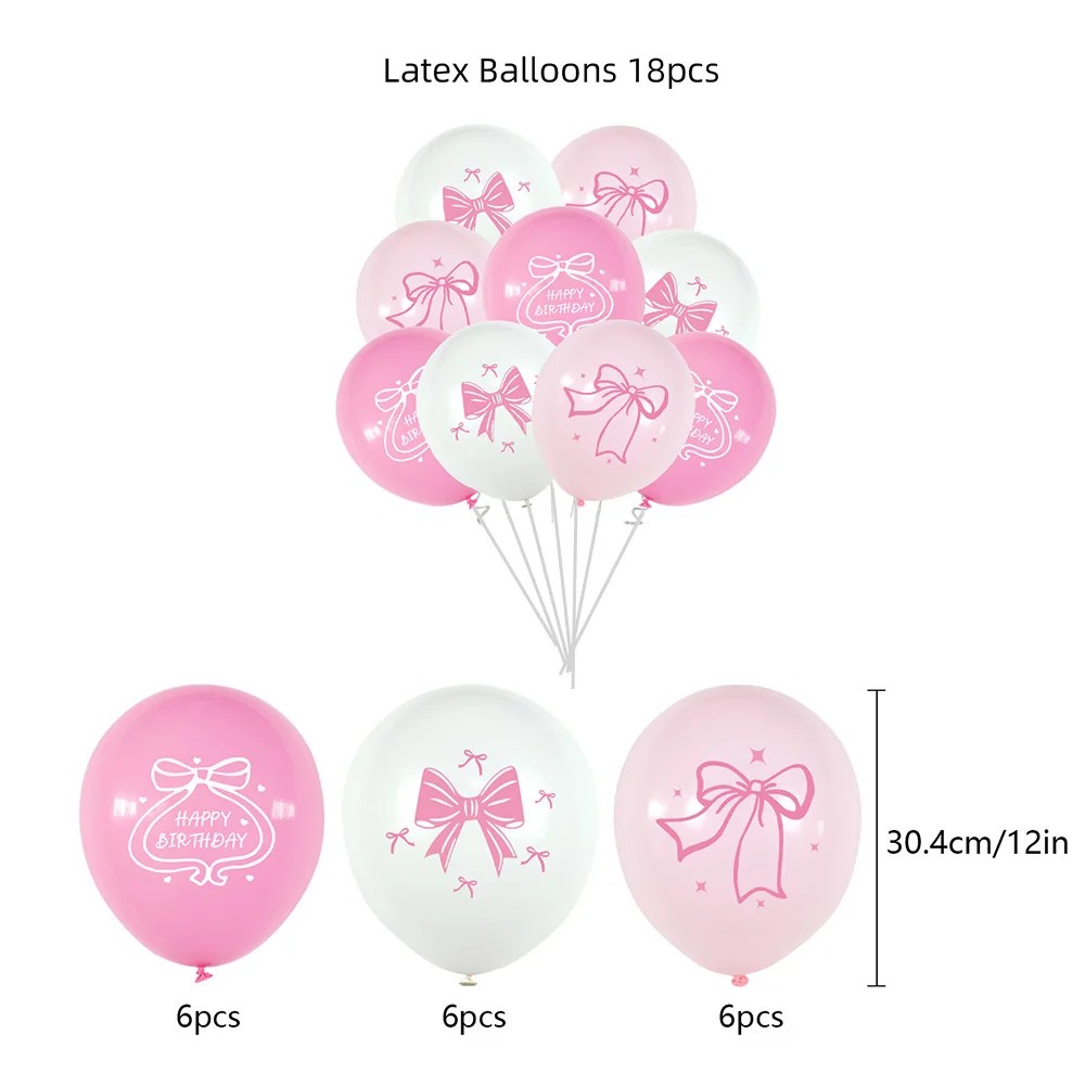 18 pcs Ballons d'anniversaire en latex 30,4 cm Mix rose et blanc avec des nœuds Happy Birthday Décorations de fête baby shower
