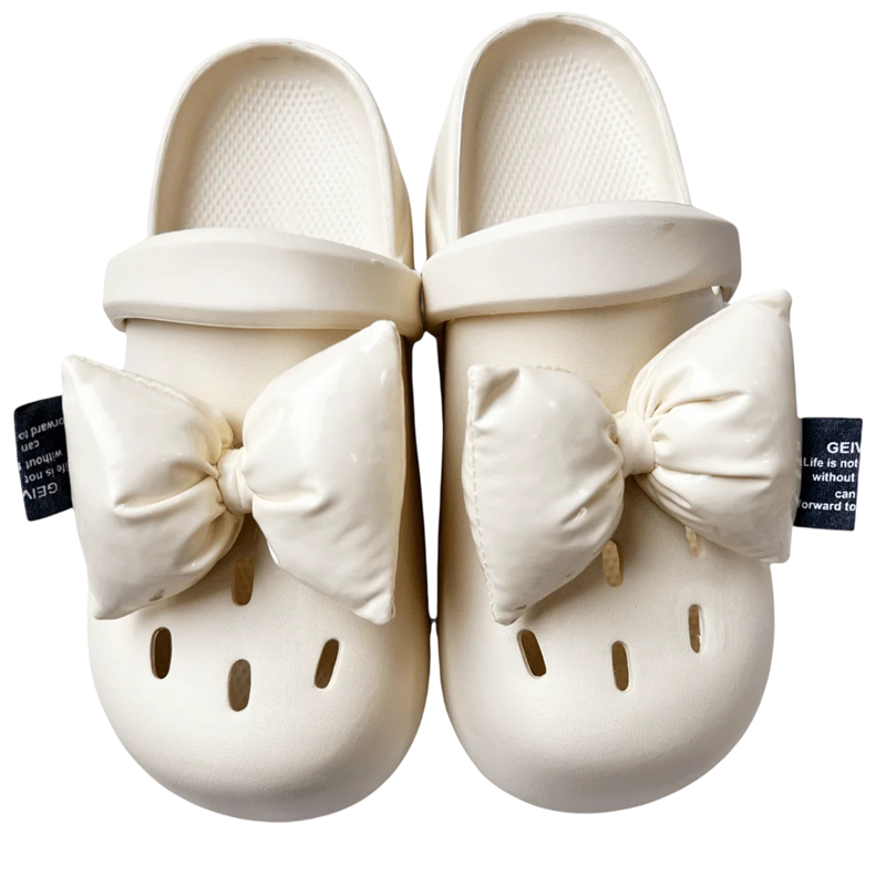 Ornements pour crocs en forme de nœuds en cuir PU. Fixation simple et changement rapide de l'apparence des chaussures à enfiler sans modifications. Description complète