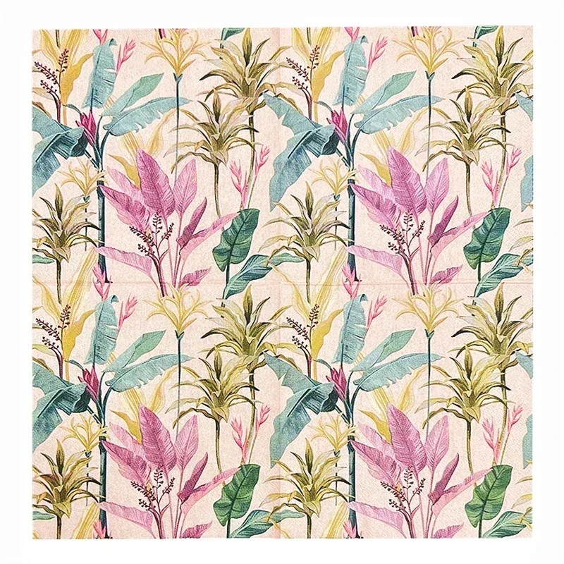 Les serviettes en papier avec un motif tropical sont le choix idéal pour quiconque souhaite créer une atmosphère stylée et fraîche lors des repas. Grâce à leur design moderne, elles se combinent facilement avec des décorations naturelles, des fleurs ou de la vaisselle minimaliste. La fabrication en deux couches assure fiabilité à chaque utilisation. Les serviettes conviennent aussi bien aux ménages qu'aux restaurants, cafés ou services de traiteur. Offrez à votre table une touche d'exotisme et d'élégance.