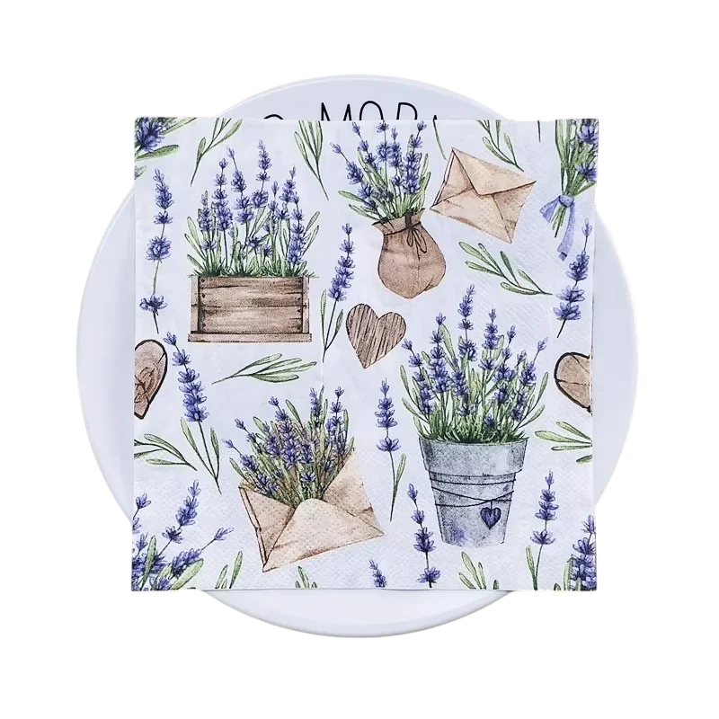 Les serviettes en papier avec un motif de lavande sont un complément parfait pour tous ceux qui souhaitent créer une atmosphère élégante et agréable lors des repas. Le design provençal apporte une touche de la campagne française et d'élégance naturelle à l'intérieur. Les serviettes se combinent facilement avec des décorations florales, des matériaux naturels ou des accessoires vintage. Grâce à leur conception pratique à deux couches, elles conviennent non seulement aux ménages, mais aussi aux cafés, restaurants ou événements festifs. Offrez à votre table un style provençal romantique.