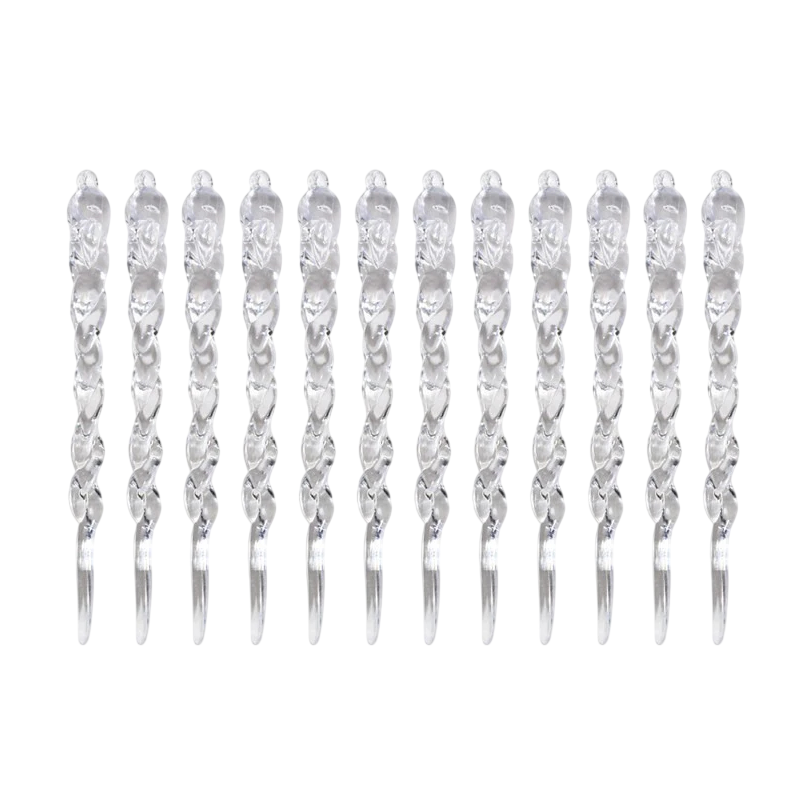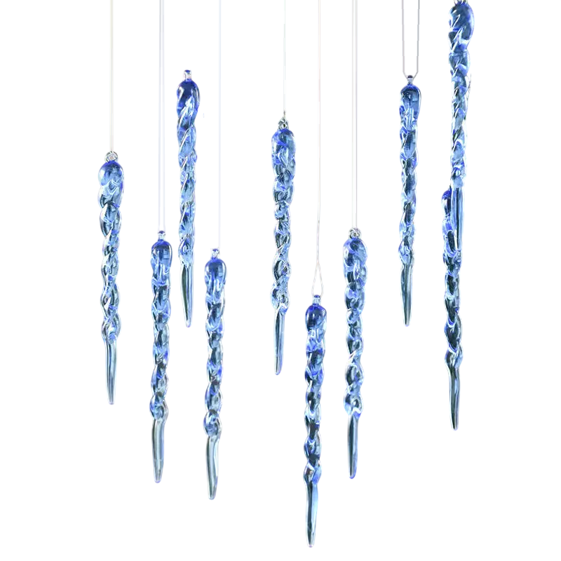 Avec des dimensions uniformes de 13 x 1 cm, les stalactites suspendues créent un aspect très harmonieux et un look propre et ordonné. Leur finition translucide se marie facilement avec d'autres décorations de Noël, des lumières et des décorations naturelles. Les stalactites s'adaptent à des styles de décoration modernes et classiques et complètent magnifiquement les intérieurs aux teintes argentées, blanches et bleues. Leur conception suspendue permet une installation rapide sans fixation compliquée.