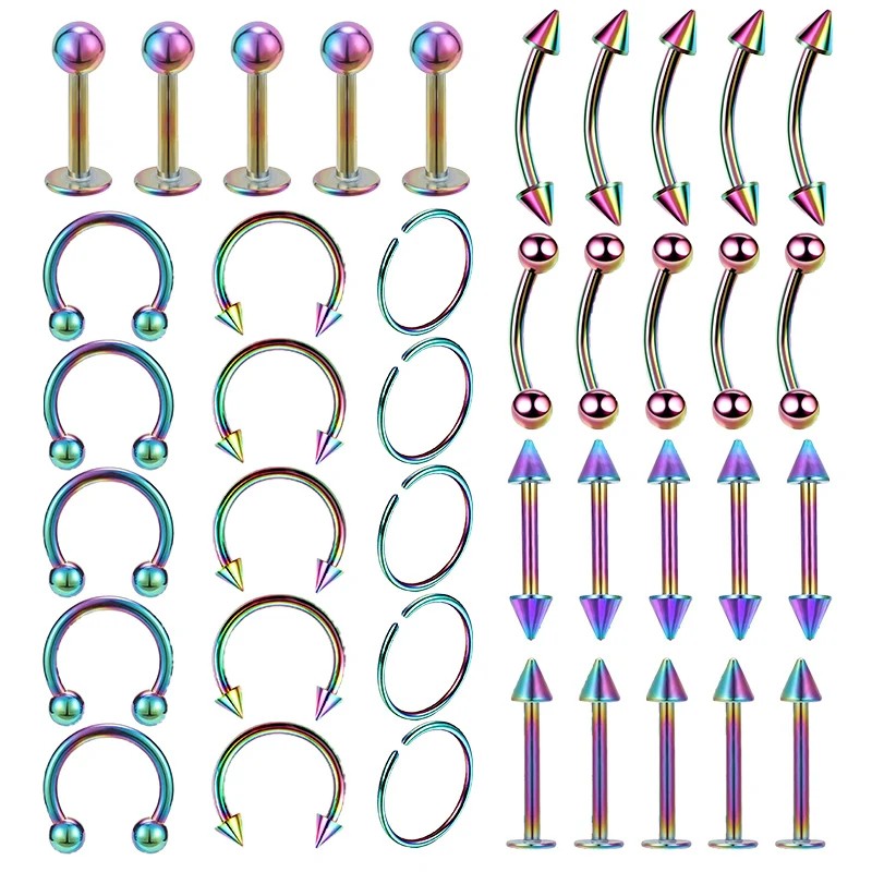 Set universel de 40 piercings en acier chirurgical de 10 mm adapté à différents types de piercings sur le corps, pour un usage quotidien et comme réserve. Description complète