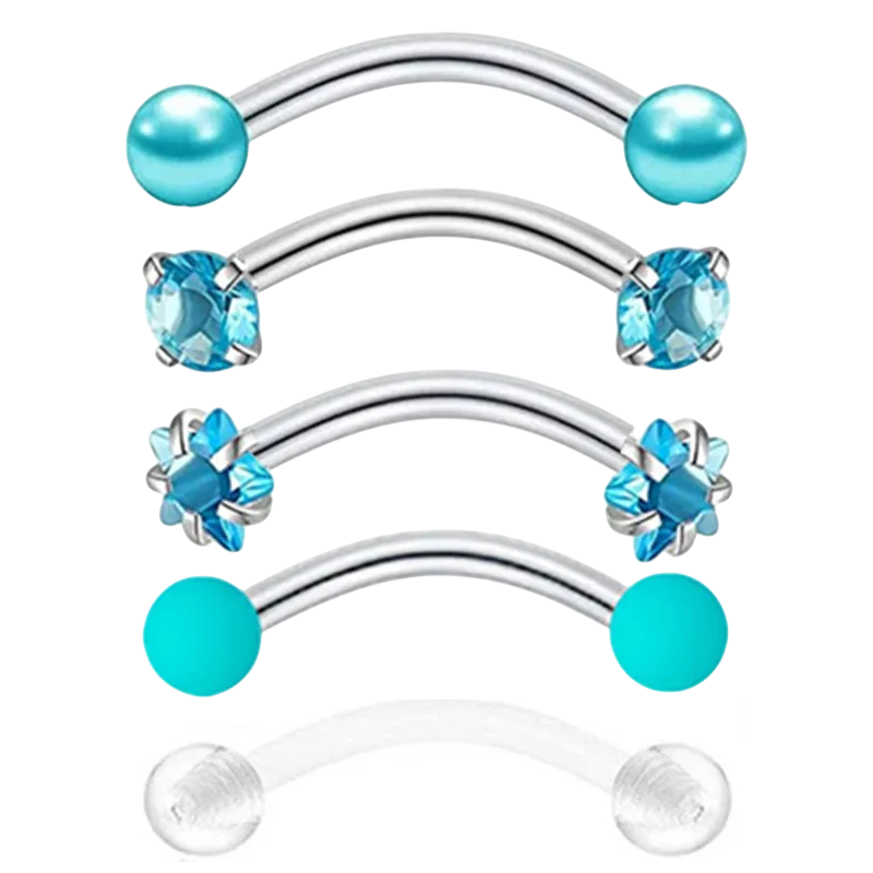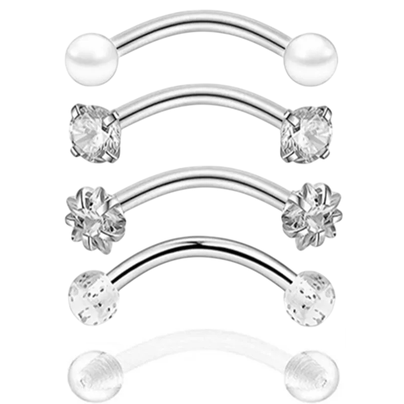 5 pièces Piercings en cristal pour le sourcil 1,2 × 8 × 3 mm Acier inoxydable avec fleur Bijoux courbés