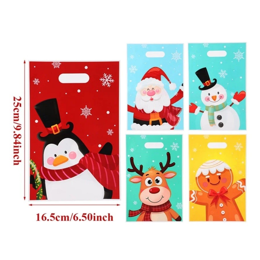 50 sacs cadeaux avec des motifs d'enfants de Noël 25 x 16,5 cm Sacs en plastique avec anses pour petits cadeaux et friandises Emballage de Noël joyeux