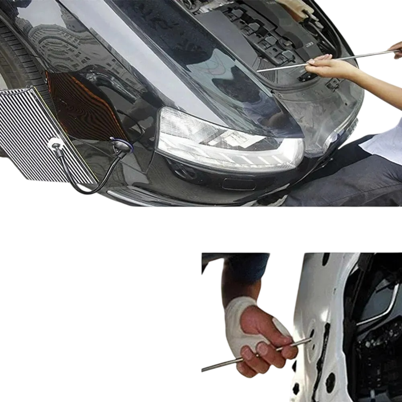 Ce kit PDR est conçu pour la réparation manuelle des bosses de carrosserie sans avoir besoin d'intervenir sur la peinture. Il combine plusieurs types d'outils qui permettent un travail précis sur différentes parties de la carrosserie et un meilleur contrôle lors du redressement de la tôle. L'acier inoxydable utilisé pour les principaux outils garantit la solidité et la longévité. Le kit est adapté pour les petites et moyennes bosses causées par une utilisation normale. Grâce à la variabilité des outils, il est utilisable tant pour des réparations domestiques que pour un usage en atelier.