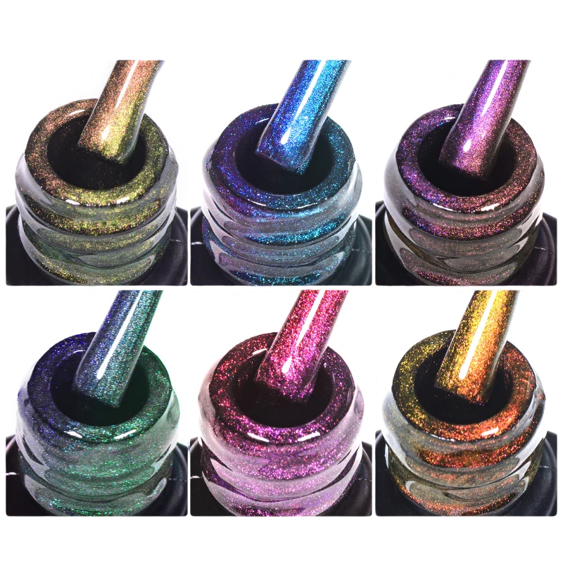 Ce kit premium de vernis gel magnétiques est conçu pour une décoration des ongles frappante et visuellement impressionnante avec effet œil de chat. Il contient 8 flacons de 7 ml, permettant de créer des effets magnétiques 9D uniques avec une grande profondeur et brillance. Les vernis sont adaptés pour le durcissement sous lampe UV et LED et offrent une tenue durable de 2–3 semaines sans perte d'intensité. La composition est douce, écologique et sans produits chimiques irritants, ce qui est apprécié tant par les salons professionnels que par les utilisateurs à domicile. Le résultat est des ongles fantastiquement brillants avec un aspect professionnel.