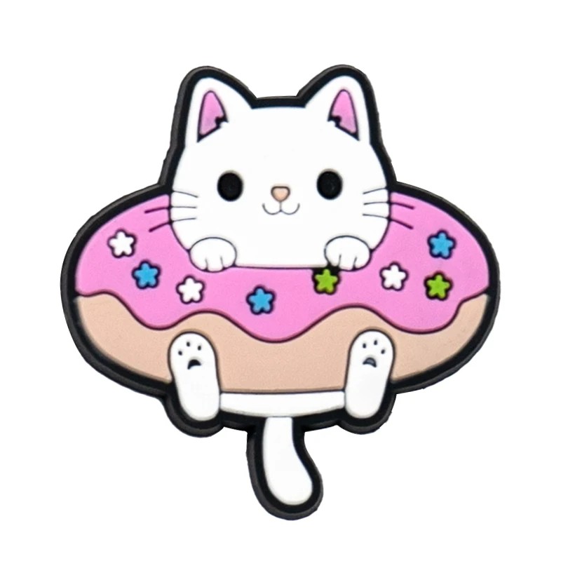 Accessoire pour crocs chat blanc dans un donut rose décoration en PVC pour chaussures crocs décoration de chaussures motif ludique pour chaussures