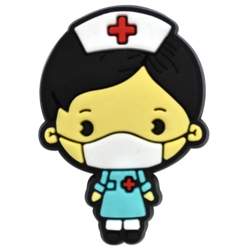 L'accessoire pour crocs avec motif infirmier représente un moyen simple de modifier l'apparence des chaussures grâce à un détail thématique. La décoration représente une figure d'infirmier avec des éléments typiques, tels qu'une coiffe médicale avec une croix et un masque de protection. Cela rend le motif facilement reconnaissable et approprié comme accessoire pour un usage quotidien. Ce type de décoration s'insère dans les trous des chaussures et ne nécessite aucune modification supplémentaire.