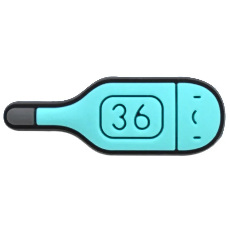 L'accessoire pour crocs en forme de thermomètre représente un détail simple qui peut raviver l'apparence des chaussures et leur donner un élément thématique médical. Le motif du thermomètre est facilement reconnaissable grâce à sa forme typique et à la valeur affichée, qui est visible directement sur l'accessoire. Ce design convient aussi bien pour un usage quotidien que comme petit ornement pour les crocs.