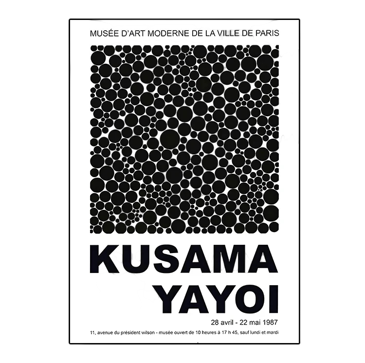 Page d’accueil Page d’accueil Maison et intérieur Décorations et accessoires d'intérieur Cadres et tableaux Affiche murale motif abstrait de points Yayoi Kusama 50 x 70 cm impression sur toile noir et blanc sans cadre décoration d'intérieur