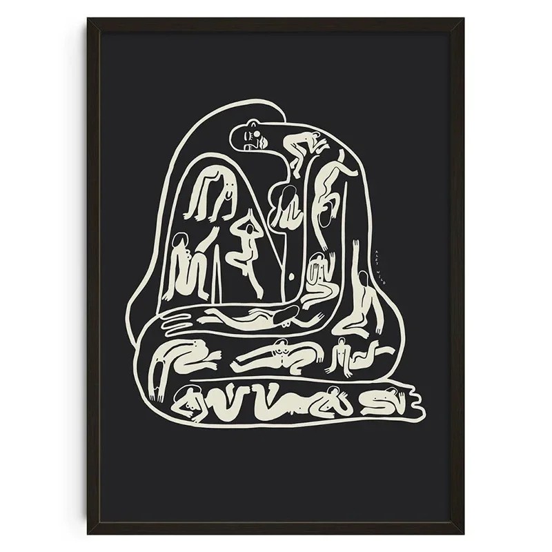 La réalisation minimaliste en noir et blanc facilite l'harmonisation avec les autres éléments de l'intérieur. Étant donné que l'affiche est livrée sans cadre, elle peut être facilement adaptée selon les goûts et le style de décoration. Le motif abstrait de silhouette de personnage ajoute un élément visuel distinctif à l'espace sans surcharge inutile.