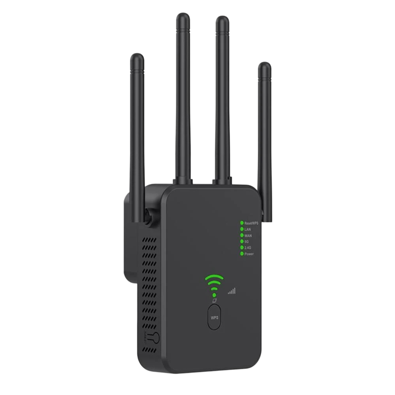 Amplificateur de signal WiFi AC1200 1200 Mb/s double bande 2,4 GHz et 5 GHz 4 antennes externes mode WPS répéteur AP routeur pour étendre le WiFi