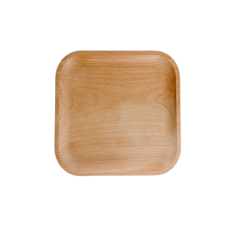 Assiette carrée en bois 15 × 15 cm avec coins arrondis idéale pour servir des desserts, des fruits et des plats légers. Aspect naturel pour la table. Description complète