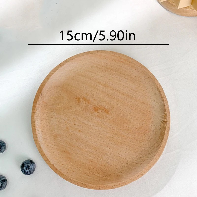 Assiette à dessert ronde 15 cm en bois massif, plateau en bois marron clair pour servir des desserts et des en-cas