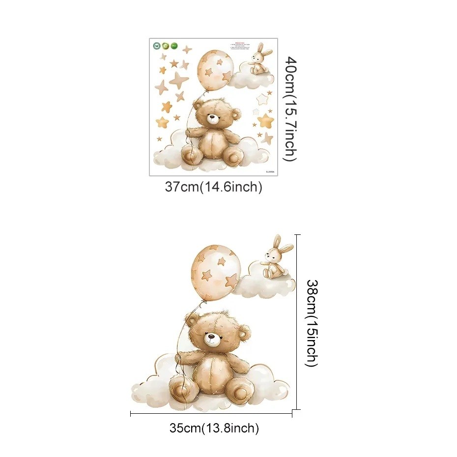 L'autocollant peut être appliqué en quelques minutes, sans besoin de percer, de peindre ou d'autres modifications de l'intérieur. Il suffit de préparer une surface sèche, propre et lisse, de retirer le film de support et d'appliquer soigneusement l'autocollant à l'endroit choisi. Si nécessaire, il peut être retiré délicatement sans endommager significativement la surface du mur. Ce motif est universel et convient aussi bien aux chambres de filles qu'à celles de garçons, et grâce à son traitement délicat, il ne semble pas trop prononcé. L'autocollant avec l'ourson et le lapin est un excellent choix pour les parents qui souhaitent créer simplement et rapidement un environnement chaleureux, bienveillant et visuellement agréable pour le jeu, le repos et l'endormissement de leurs enfants.