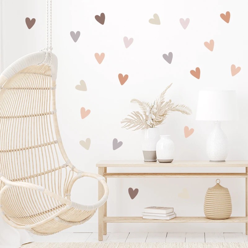 Ensemble de 36 autocollants décoratifs en forme de cœur en PVC résistant. Convient pour les murs, les meubles et les accessoires. Application simple et trois feuilles d'autocollants variés. Description complète