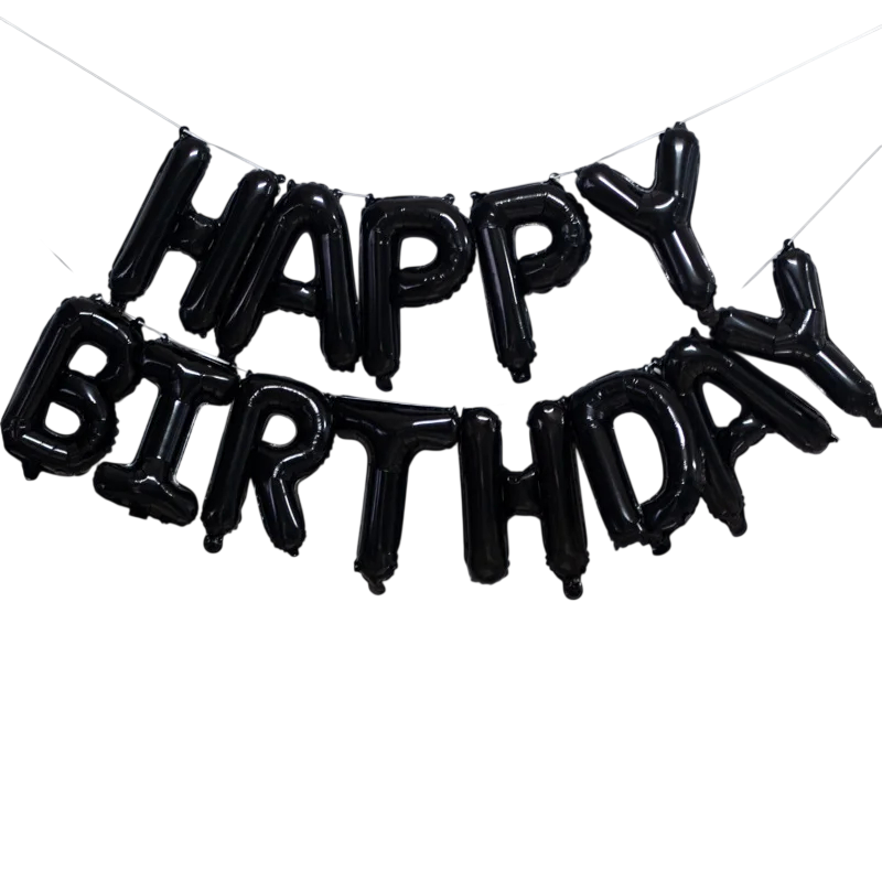 Ballon en aluminium HAPPY BIRTHDAY décoratif inscription ballons noirs décoration de fête d'anniversaire inscription suspendue pour célébration d'anniversaire