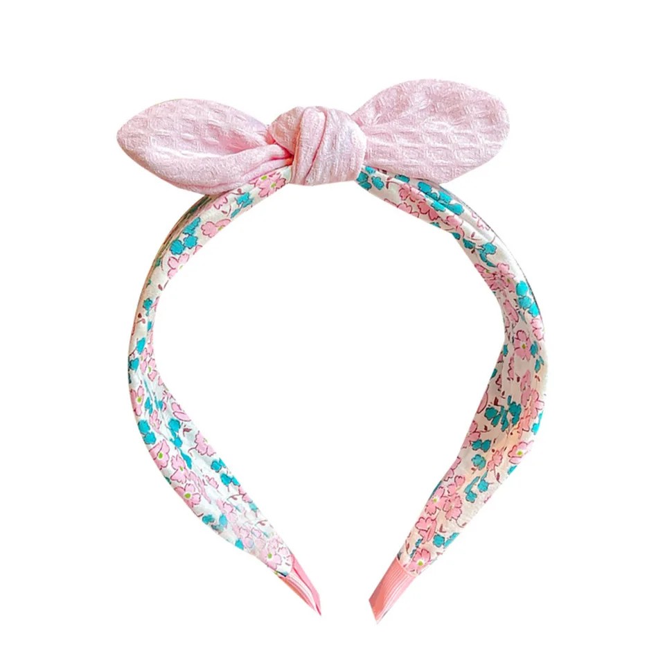 Ce bandeau romantique à motif floral et nœud apporte douceur et style à votre coiffure. Un accessoire confortable adapté à un usage quotidien ou festif. Description complète