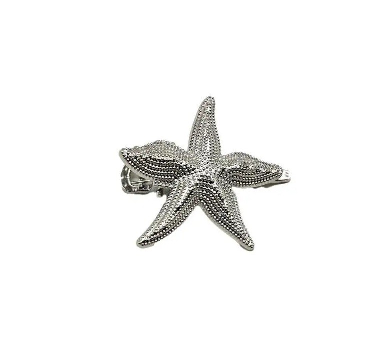 Ajoutez un détail original inspiré du monde marin à votre coiffure. Cette élégante barrette à cheveux en forme d'étoile de mer se distingue par son relief travaillé et sa surface délicatement structurée. L'apparence métallique argentée est moderne, intemporelle et se marie facilement avec différents styles.