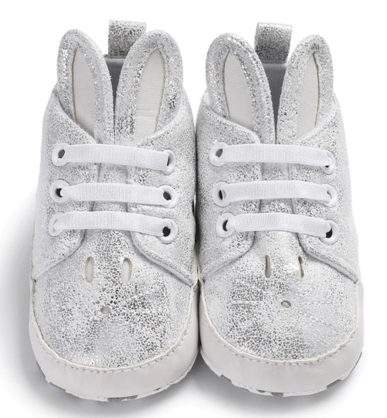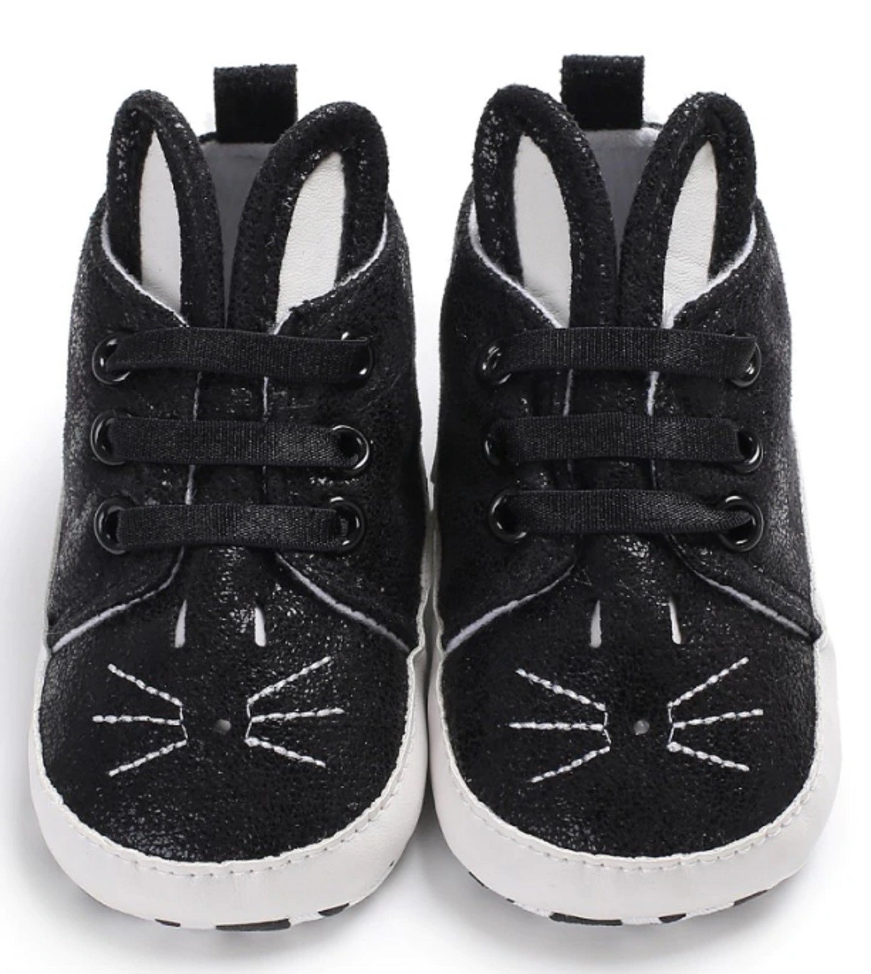 Baskets montantes pour enfants avec des oreilles, conçues pour les plus petits lors de leurs premiers pas.