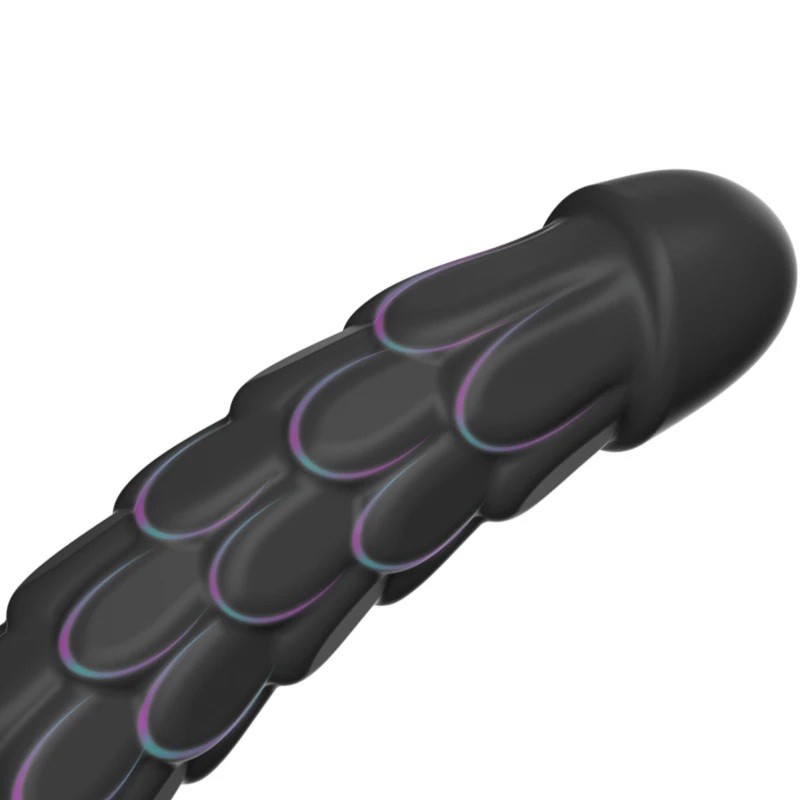 Bâtonnet anal en silicone avec un design unique d'écailles pour une stimulation accrue. Silicone de haute qualité, compatible avec les gels à base d'eau. Description complète