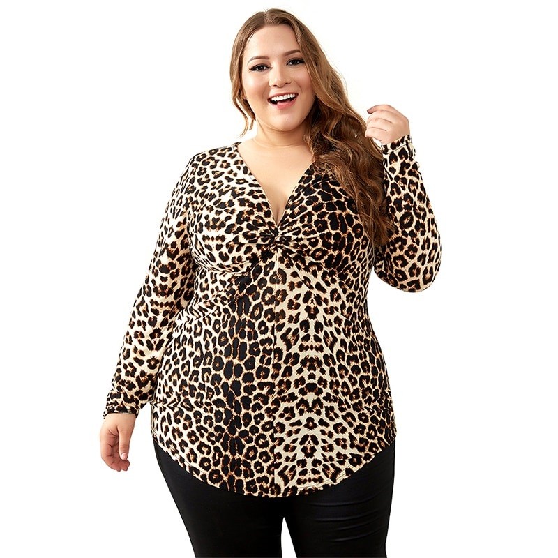 Cette blouse à motif léopard convient à chaque belle femme ronde.