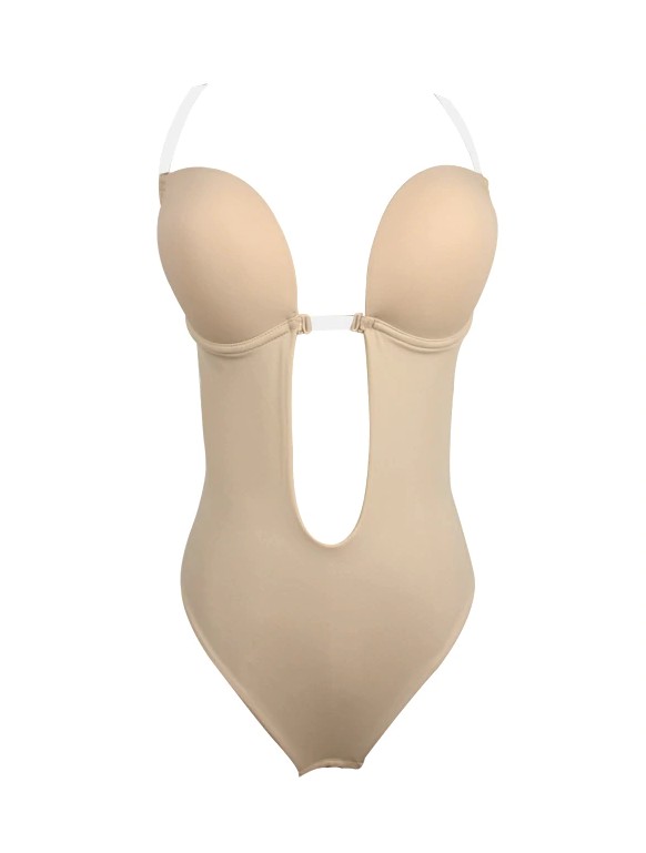 Le body a des bretelles invisibles et le dos a un décolleté plongeant.