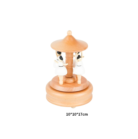 Boîte à musique en bois avec couples dansants sous un toit mécanisme manuel 10 × 10 × 17 cm décoration en bois naturel