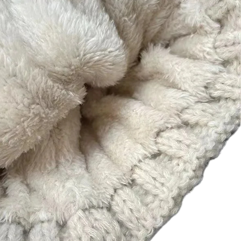 Bonnet d'hiver en tricot stylé avec pompon en fourrure et doublure en peluche. Matériau chaud, tour élastique et motif Twist moderne pour les jours froids. Description complète