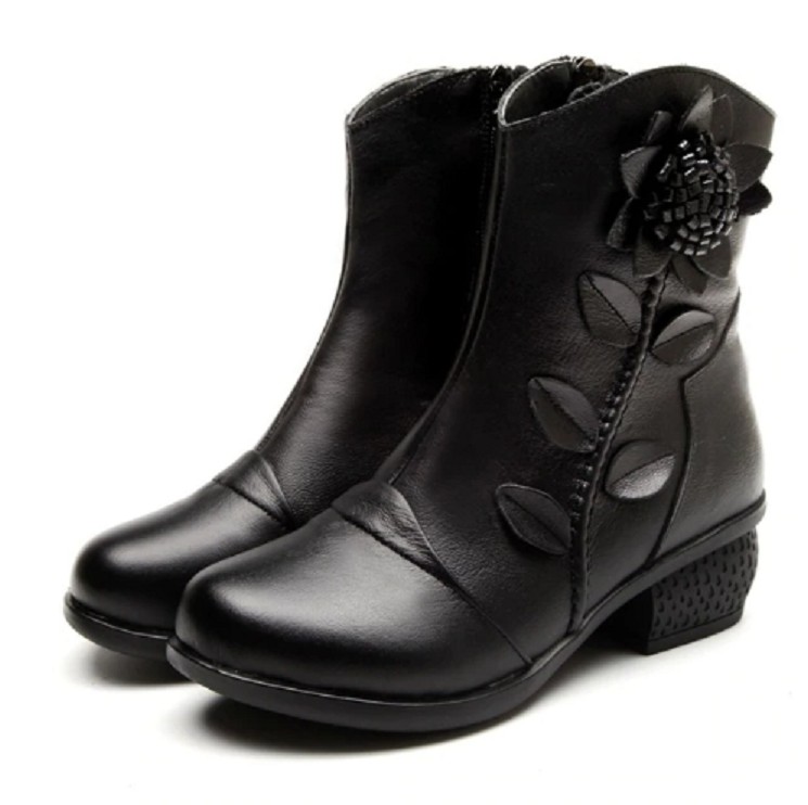 Bottes d'hiver à talon pour femmes avec fleur J1817