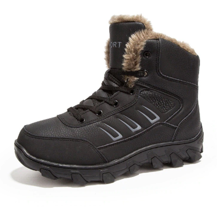 Bottes d'hiver montantes pour hommes avec fourrure, que vous apprécierez sûrement par temps froid.