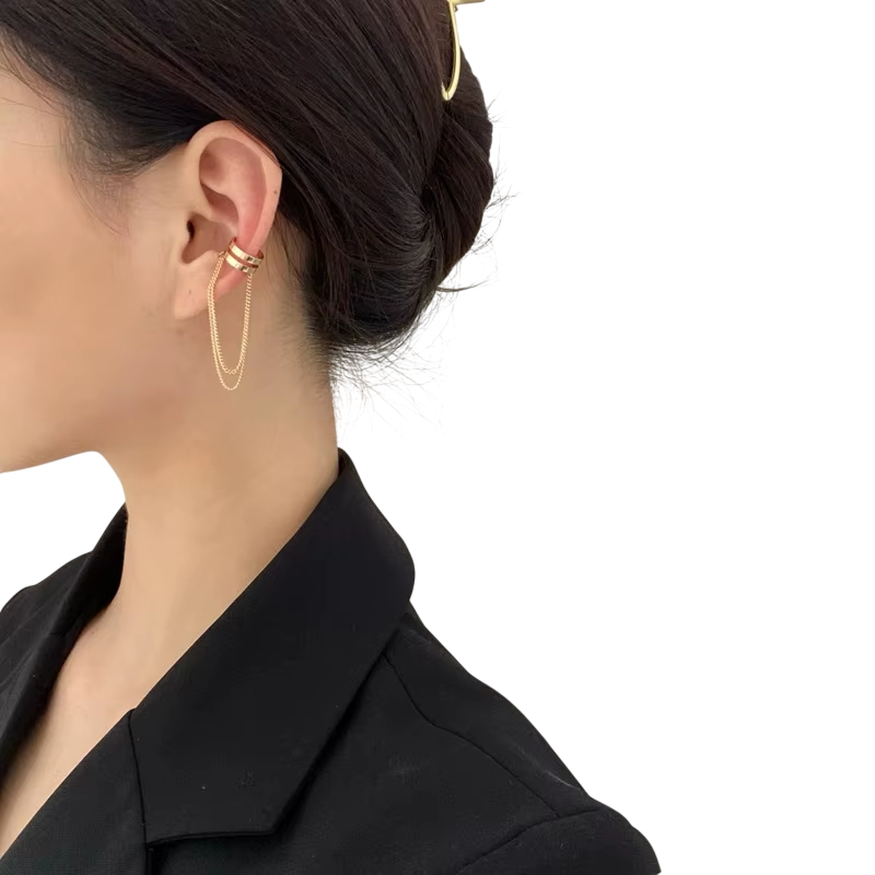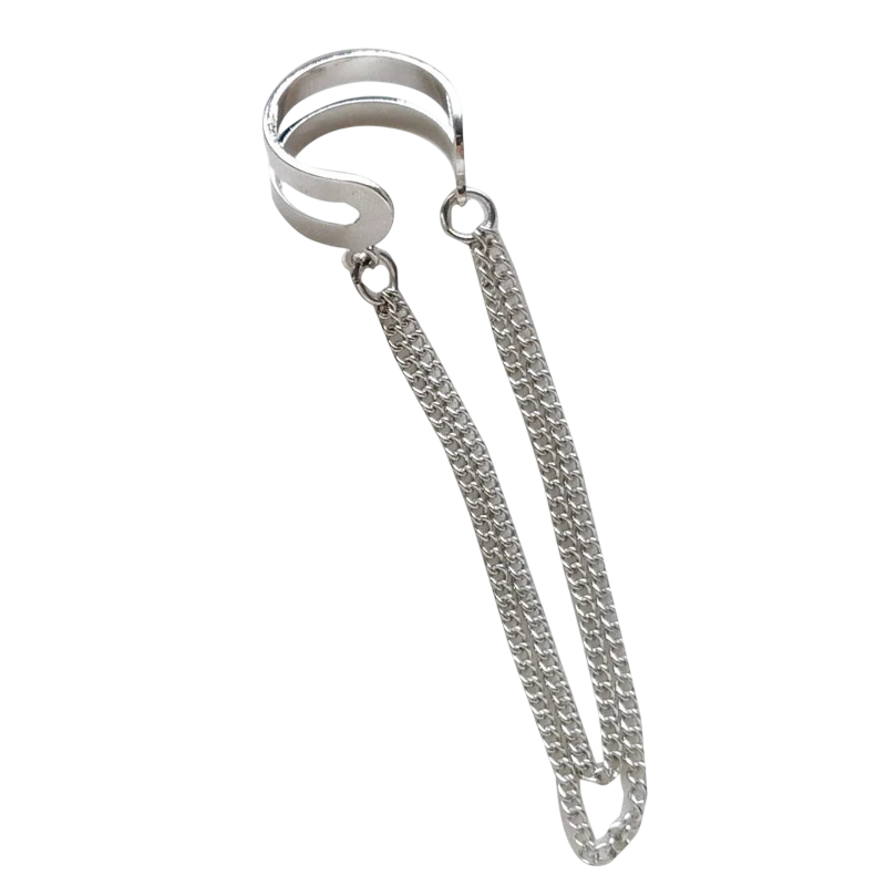 Boucle d'oreille double punk moderne avec chaîne pour oreille, idéale pour un look tendance lors d'une fête, d'un mariage ou d'un anniversaire. Clips pour un port facile. Description complète
