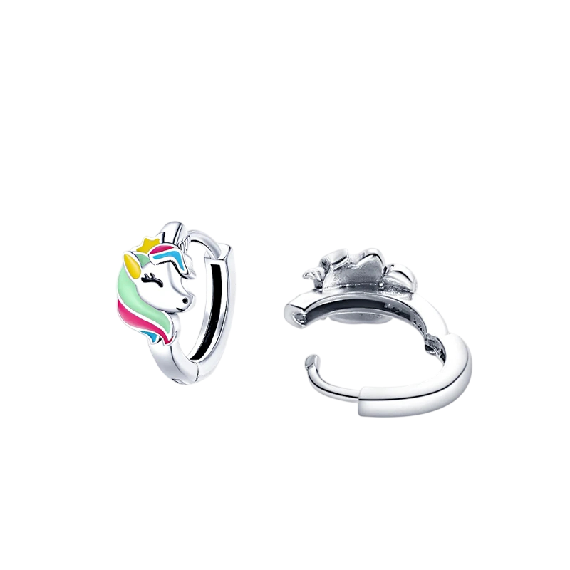 • Design : Boucles d'oreilles créoles avec motif de licorne
