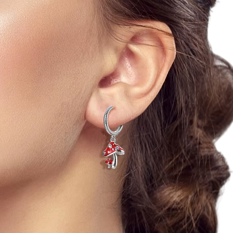 Boucles d'oreilles en amanite forestière en argent sterling 925 pour femmes Bijoux pour femmes champignon porte-bonheur amanite rouge symbole de bonne fortune Ces