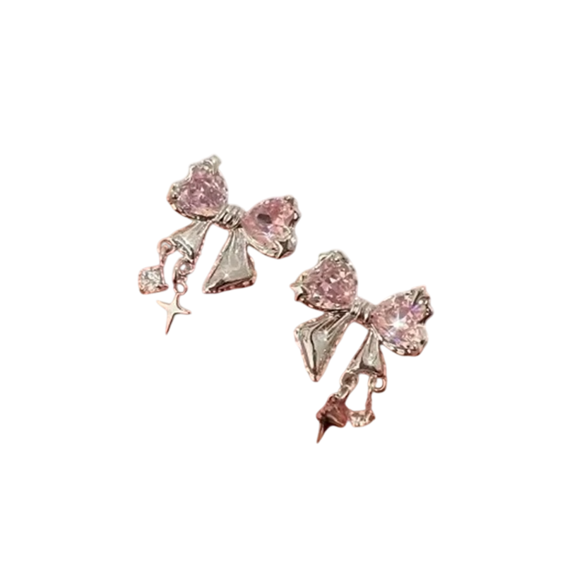 Boucles d'oreilles en zircon avec nœud Y2K élégantes pour femmes et filles. Idéales pour les fêtes, les mariages, les anniversaires, les anniversaires ou un usage quotidien. Bijoux de mode en alliage de zinc. Description complète