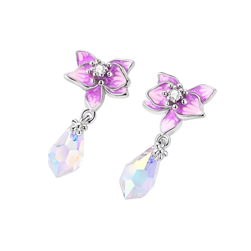 Boucles d'oreilles florales éblouissantes en argent sterling 925 pour femmes Bijoux en argent pour femmes Cadeaux orchidée symbole de beauté, d'élégance et d'amour