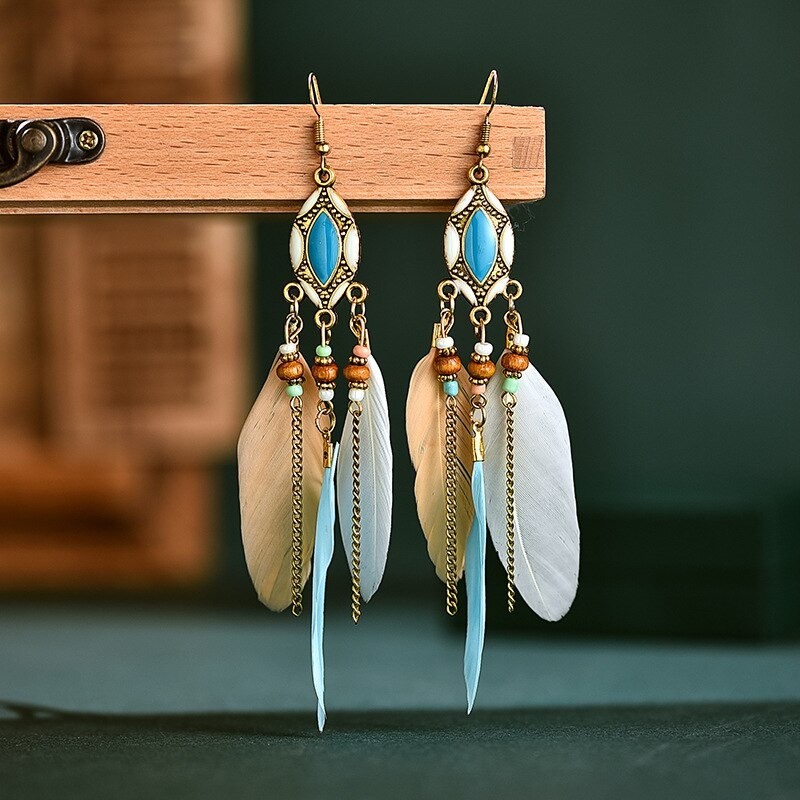 Boucles d'oreilles pendantes pour femmes avec plumes