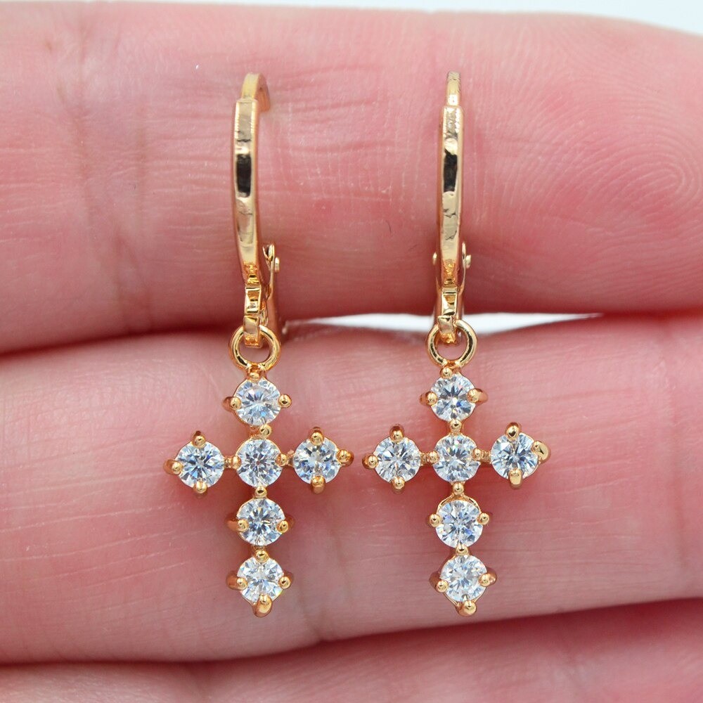 Boucles d'oreilles rondes pour femmes avec croix
