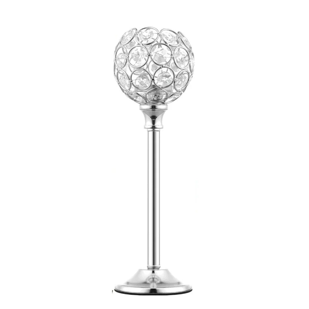 La partie supérieure du bougeoir est constituée d'une construction en forme de boule avec des pierres en cristal, qui diffusent la lumière et créent des reflets intéressants. Ce type de bougeoir est souvent utilisé lors de la préparation de décorations de tables de mariage, lors de fêtes d'anniversaire ou lors de divers événements sociaux. Grâce à son apparence marquante, il peut faire partie de la décoration d'une table festive ou d'un arrangement décoratif.