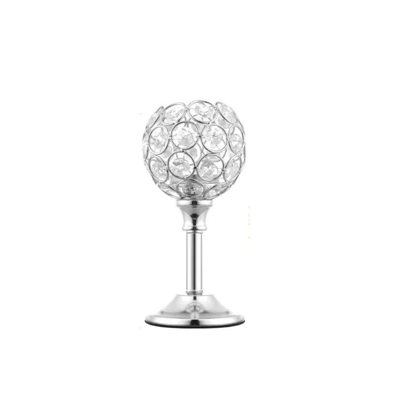 La partie supérieure du bougeoir est constituée d'une construction sphérique ornée de pierres en cristal, qui captent la lumière et créent un aspect décoratif. Ce type de bougeoir est souvent utilisé lors de l'agencement de tables de mariage, pendant des célébrations d'anniversaire ou comme décoration lors de fêtes et d'événements sociaux.