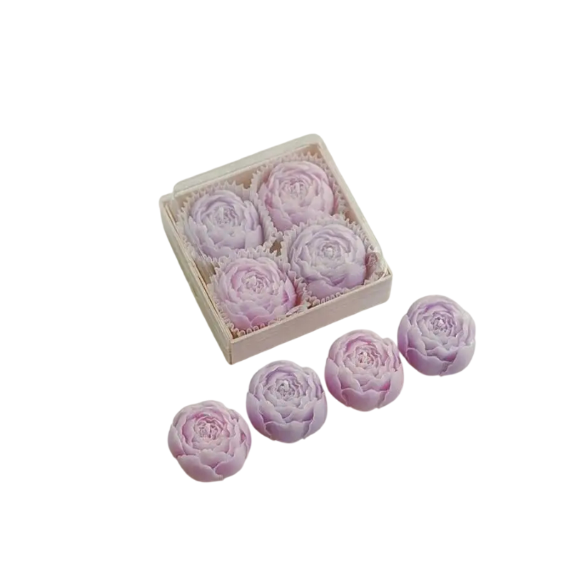 Bougies décoratives en forme de rose set de 4 pièces 3,7 x 3 cm bougies en cire sans fumée dans une boîte cadeau pour décoration et cadeaux