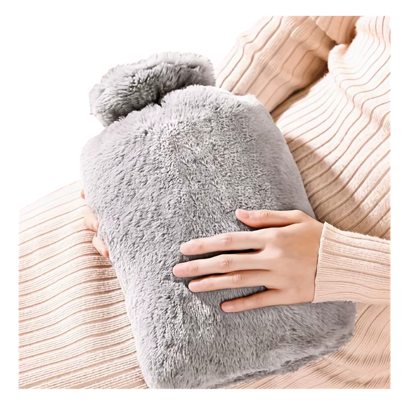 Bouillotte en peluche chauffante 2 l 2000 ml Chauffage abdominal grande capacité Housse douce Eau chaude Soulagement des crampes et du froid