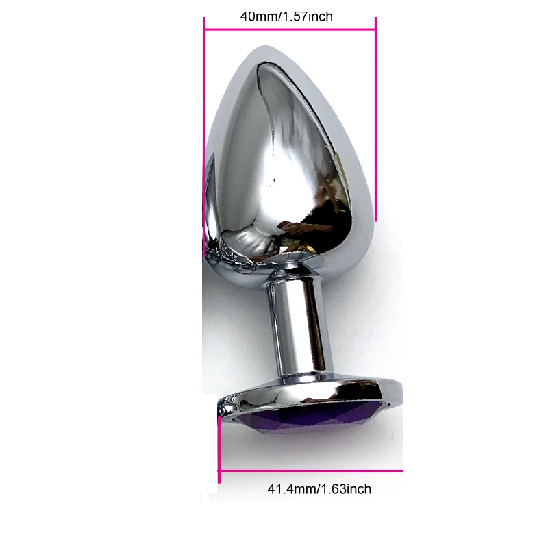 Boule anale en métal élégante avec pierre violette, surface lisse et forme ergonomique. Entretien facile, emballage discret. Description complète