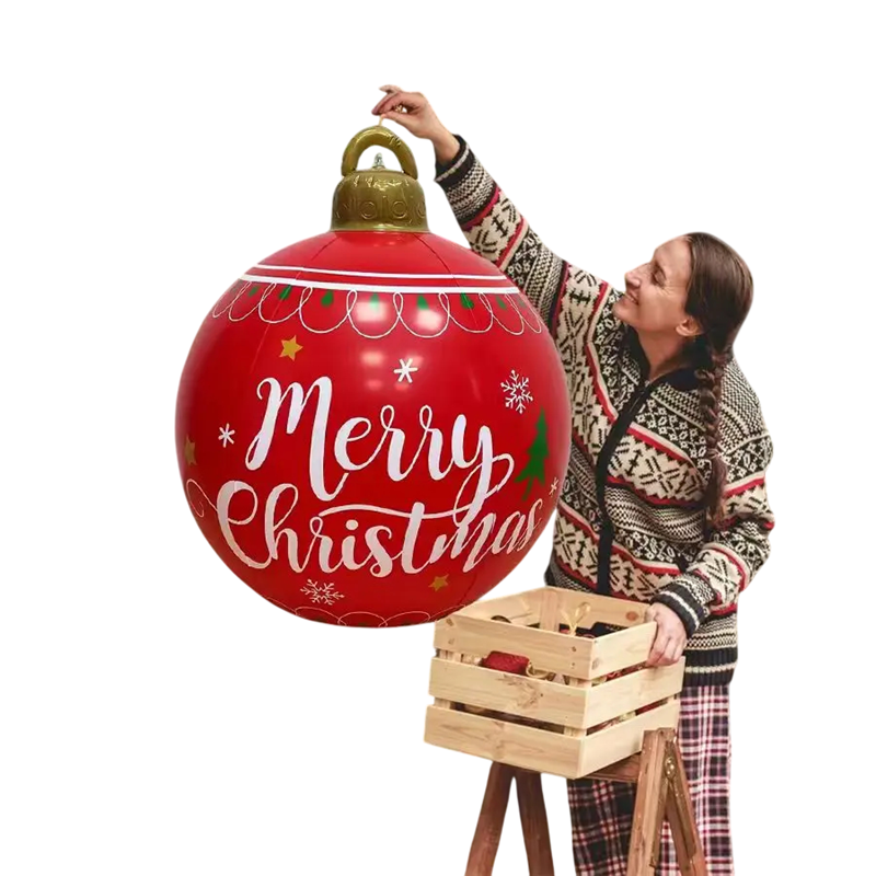 Boules de Noël Gonflables 60 x 80 cm Décoration Extérieure Géante avec Motifs Hivernaux Classiques Ornement Suspendu pour Fête de Noël