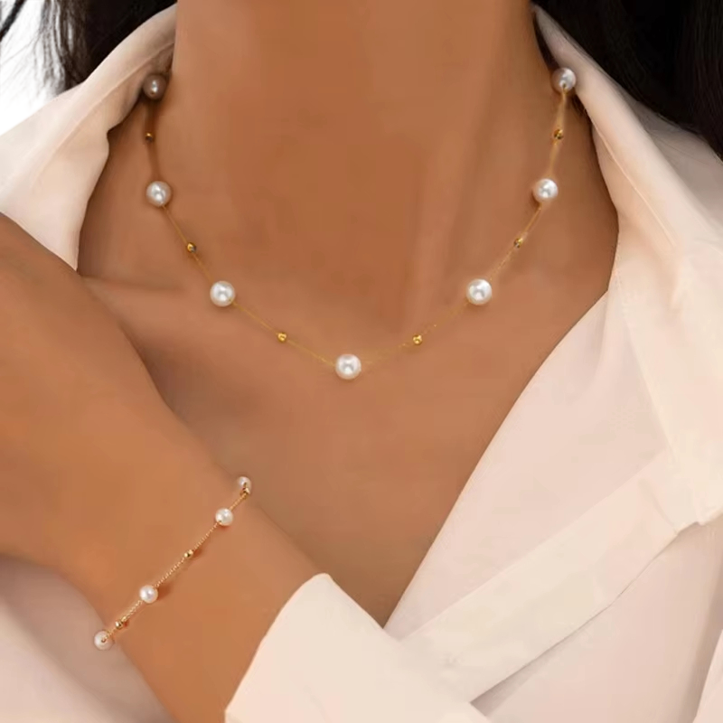 Bracelet élégant 19+5.5 cm et collier 45.5+5 cm Ensemble de bijoux décontracté et à la mode pour femmes Cadeau élégant Magnifique ensemble