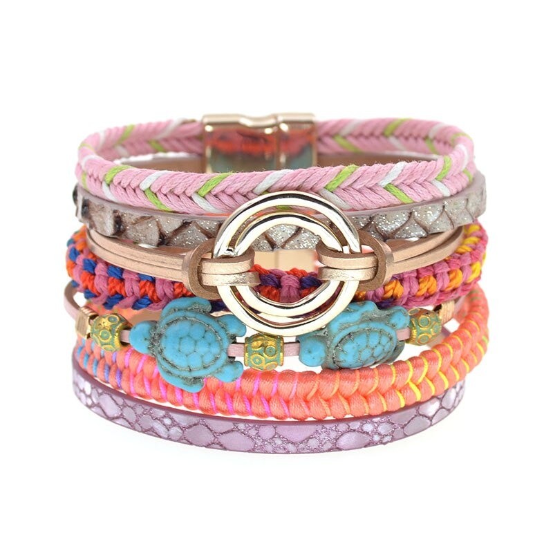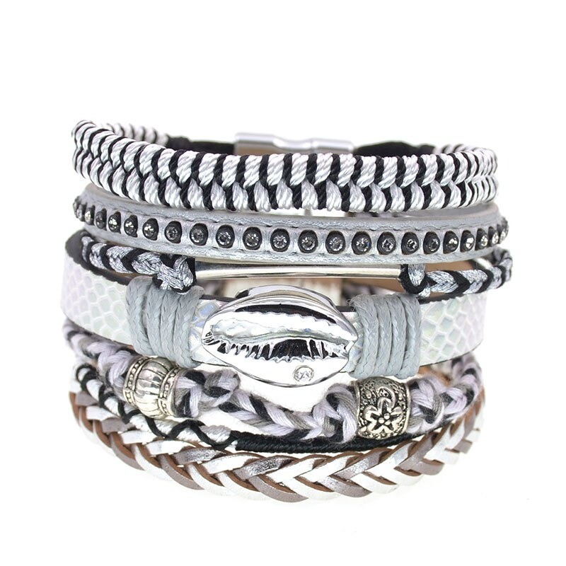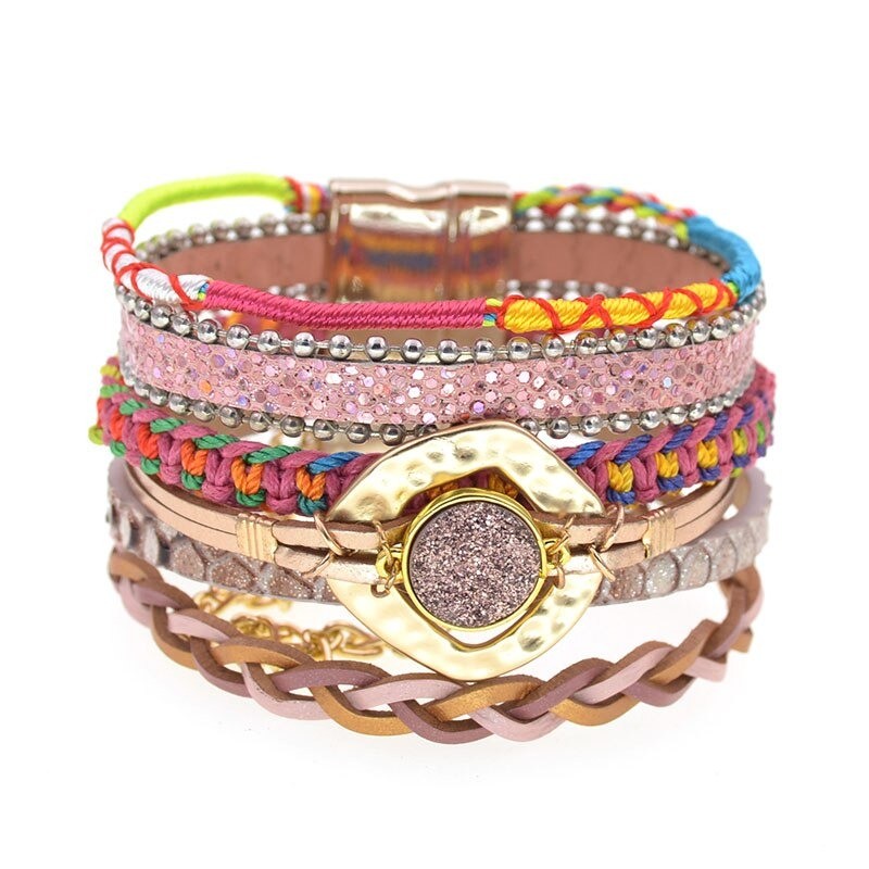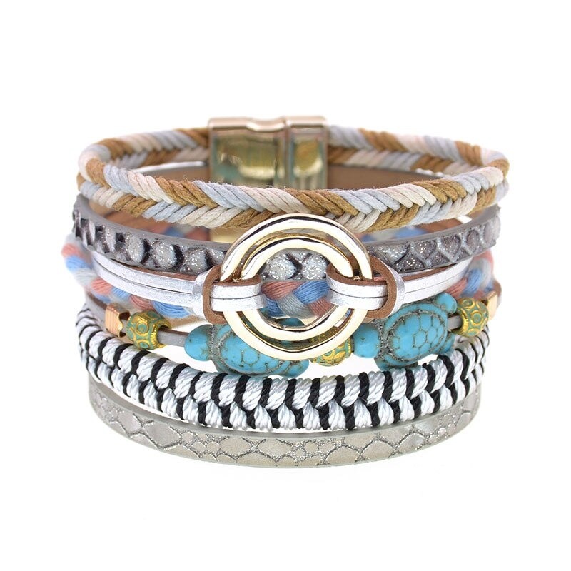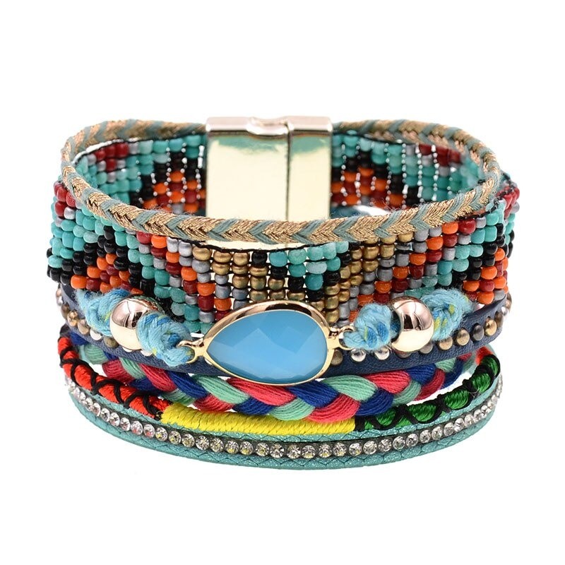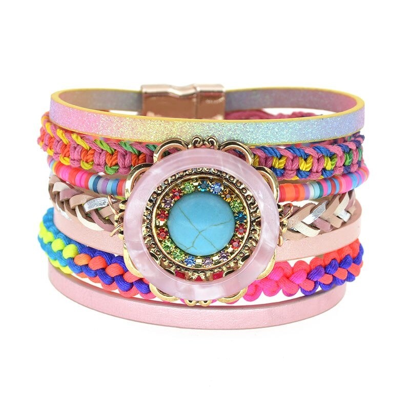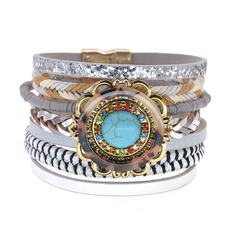 Matériau :  métal fantaisie, tissu, perles, simili cuir