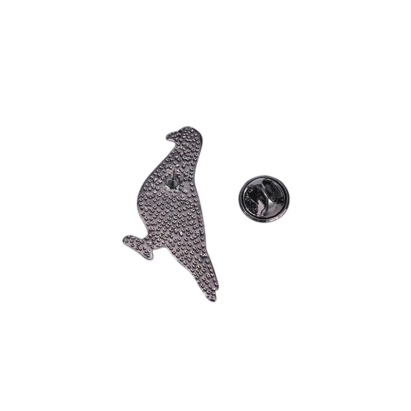 Badge en métal avec un motif de pigeon dans un style dessiné. Idéal comme accessoire discret sur un sac à dos, une veste ou un revers. Description complète